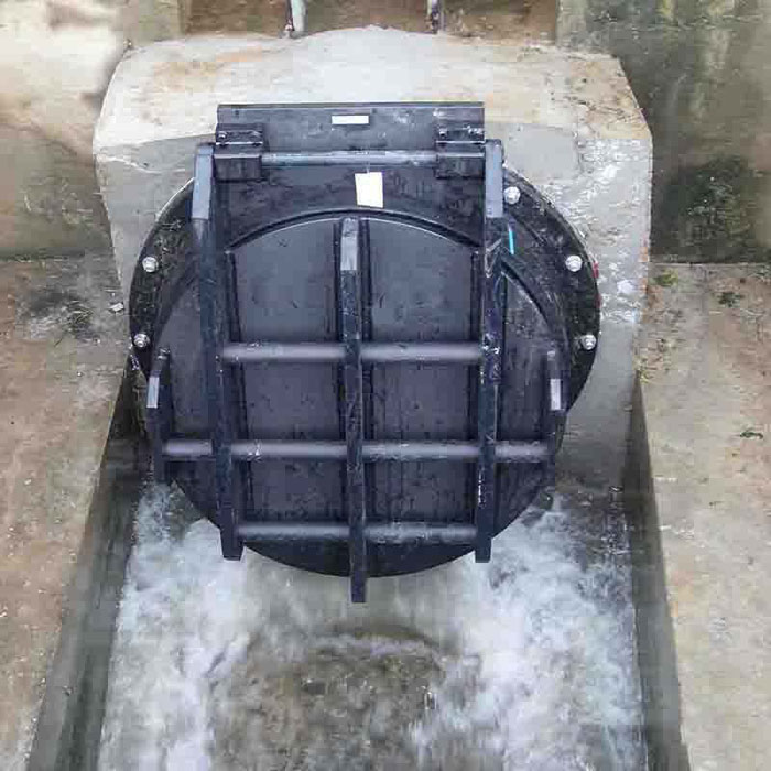 拍門是安裝在江河邊排水管出口的一種單向閥,當江河潮位高于出水管口,且壓力大于管內壓力時,拍門面板自動關閉。以防江河潮水倒灌進排水管道內,防止汛情發生,對人身財產安全是一道重要保障?。?!